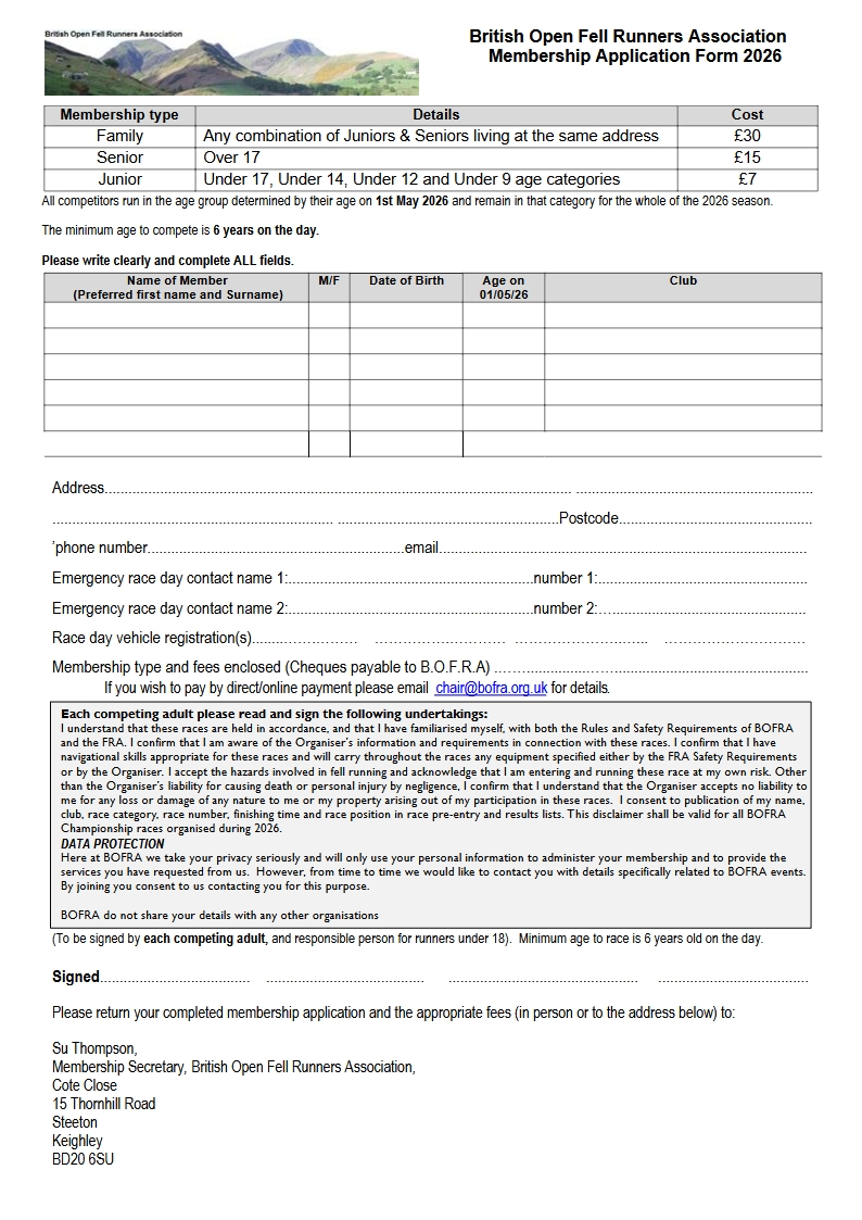 In order to allow time for processing, allocation of numbers etc, membership forms for the first Championship race must reach the Membership Secretary by 5pm Monday 27th of April. Any forms received after this date may not be processed in time for the first race.